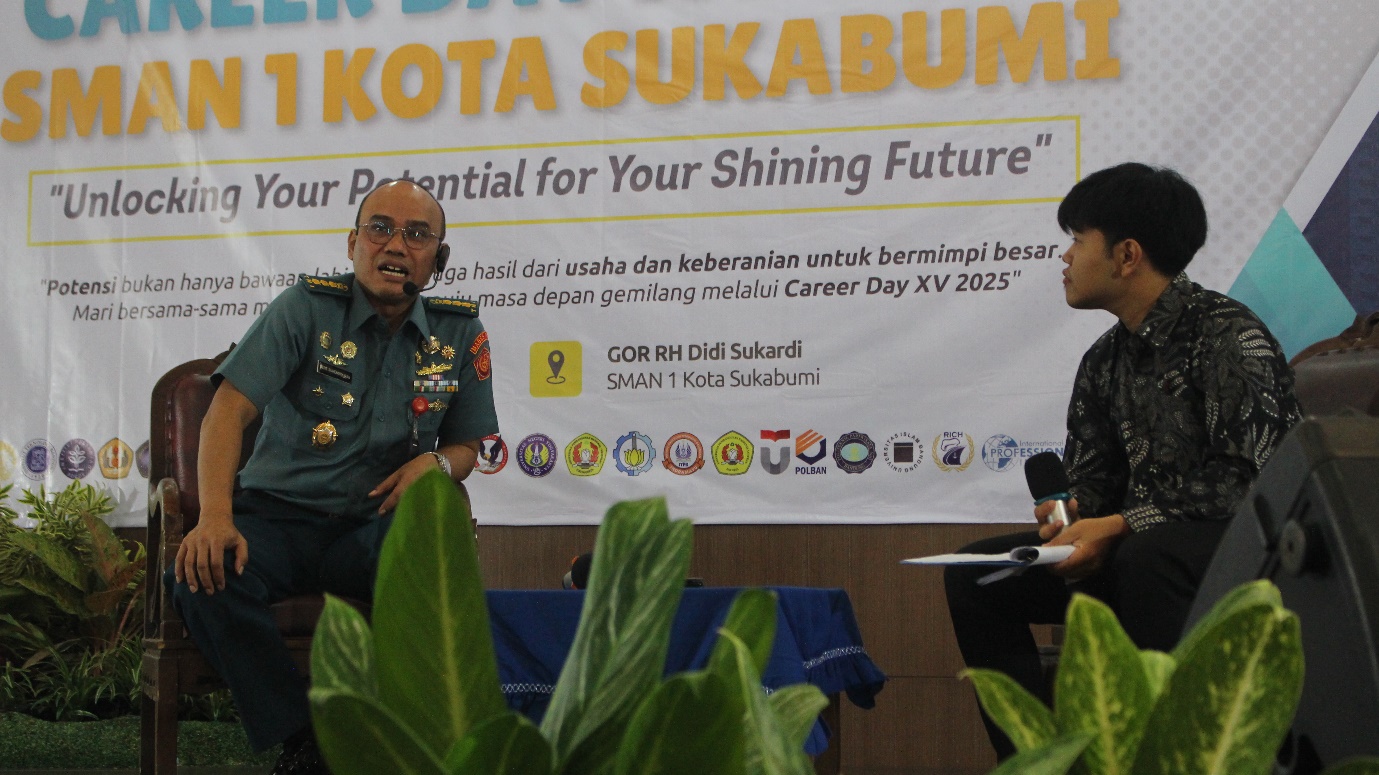 Selain itu, ada pula motivasi karir yang disampaikan oleh Bapak Dede Suhendrawan, alumni SMAN 1 Kota Sukabumi angkatan 1992, yang kini berkiprah di dunia militer. Dalam sesi ini, beliau berbagi cerita tentang perjalanan karirnya, memberikan semangat kepada siswa untuk mengejar tujuan dengan dedikasi, disiplin, dan keberanian, serta menanamkan nilai-nilai kepemimpinan sebagai bekal menghadapi masa depan.